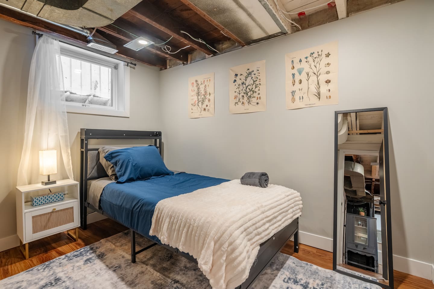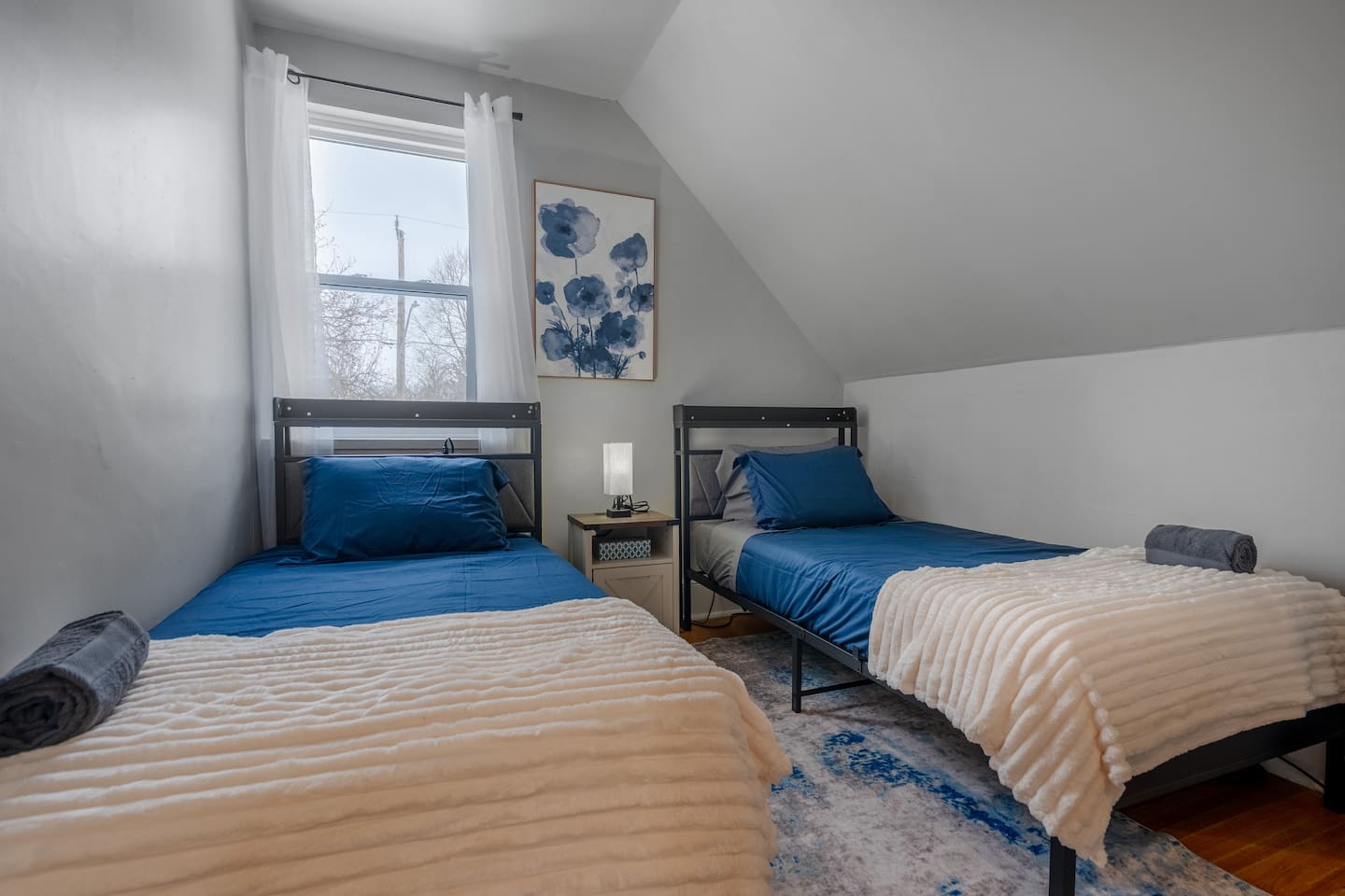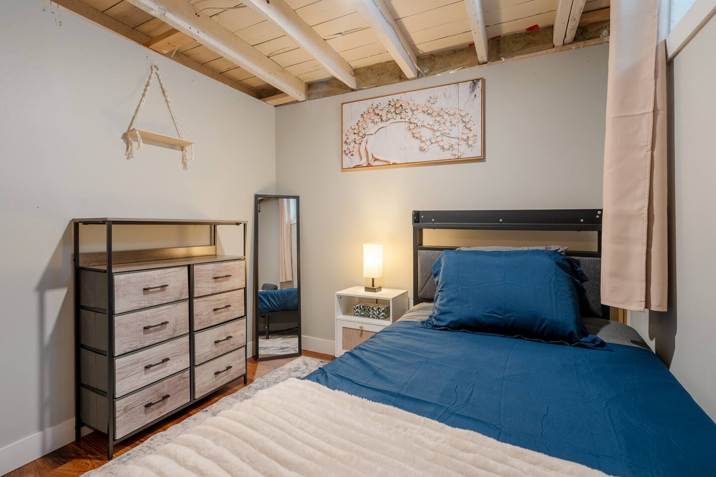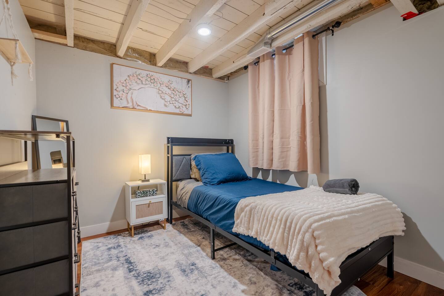 ★ Master Bedroom (second floor) ★ ✔ King-size bed with luxury mattress, plush pillows, fresh linens, and soft sheets ✔ Quiet workstation ✔ Bedside lamps for reading ★ Twin room (second floor) ★ ✔ 2 twin-size beds with premium comfort bedding ✔ Full closet space ✔ Bedside lamps for nighttime reading ★ Queen room (main floor) ★ ✔ Queen-size bed with luxury mattress, plush pillows, fresh linens, and soft sheets ✔ Full closet space ✔ Bedside lamps for nighttime reading ★ Lower Twin room 1 (basement) ★ ✔ Twin-size bed with premium comfort bedding ✔ Bedside lamps for nighttime reading ★ Lower Twin room 2 (basement) ★ ✔ Twin-size bed with premium comfort bedding ✔ Bedside lamps for nighttime reading ★ Living Room ★ ✔ 55” HD Smart TV with streaming apps ✔ Cozy seating area for relaxing ✔ High-speed Wi-Fi for work or play ★ Dining Area★ ✔ 4-Seater dining table for shared meals ★ Full Kitchen ★ A fully stocked kitchen perfect for long or short stays. Whether you're cooking a full meal or just enjoying your morning coffee, everything you need is here. ✔ Stove and Oven ✔ Full-size Refrigerator and Freezer ✔ Microwave ✔ Cookware (pots, pans, baking trays) ✔ All necessary cooking utensils ✔ Cutlery, dishes, and glassware ✔ Coffee station with coffee maker, mugs, and coffee essentials
