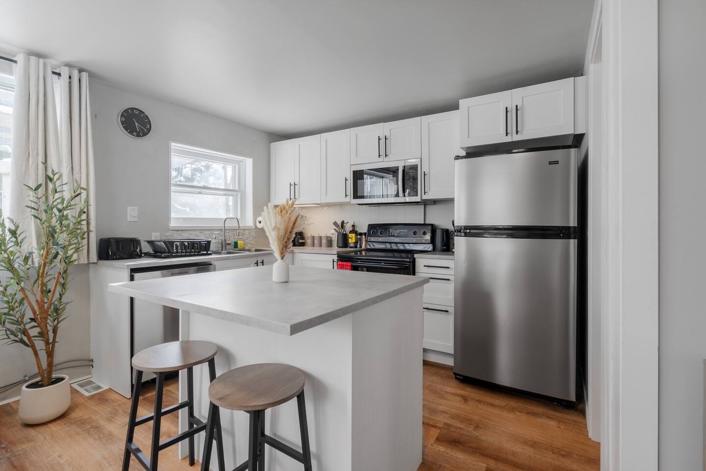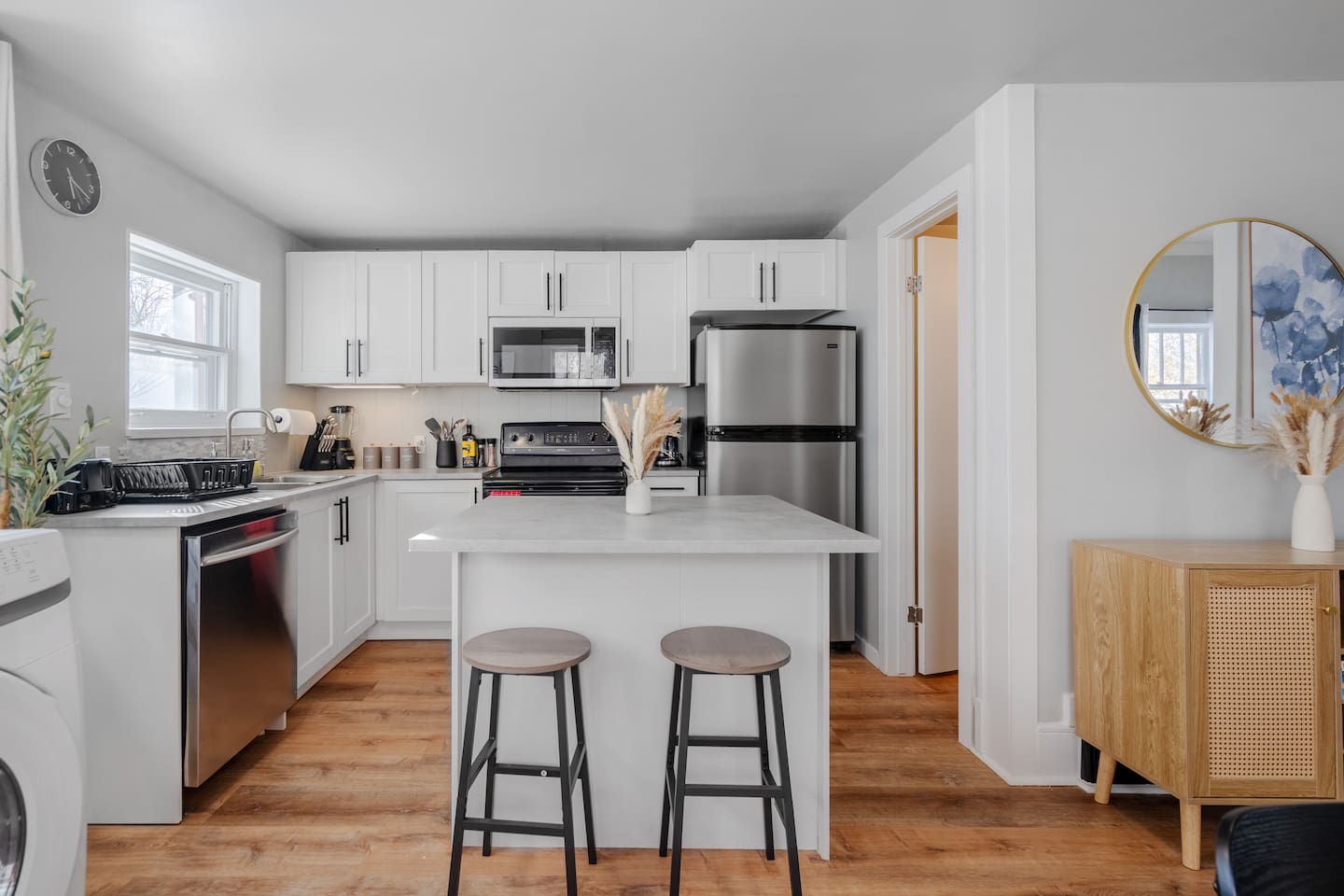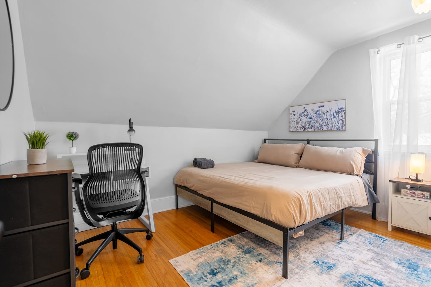 ★ Master Bedroom (second floor) ★ ✔ King-size bed with luxury mattress, plush pillows, fresh linens, and soft sheets ✔ Quiet workstation ✔ Bedside lamps for reading ★ Twin room (second floor) ★ ✔ 2 twin-size beds with premium comfort bedding ✔ Full closet space ✔ Bedside lamps for nighttime reading ★ Queen room (main floor) ★ ✔ Queen-size bed with luxury mattress, plush pillows, fresh linens, and soft sheets ✔ Full closet space ✔ Bedside lamps for nighttime reading ★ Lower Twin room 1 (basement) ★ ✔ Twin-size bed with premium comfort bedding ✔ Bedside lamps for nighttime reading ★ Lower Twin room 2 (basement) ★ ✔ Twin-size bed with premium comfort bedding ✔ Bedside lamps for nighttime reading ★ Living Room ★ ✔ 55” HD Smart TV with streaming apps ✔ Cozy seating area for relaxing ✔ High-speed Wi-Fi for work or play ★ Dining Area★ ✔ 4-Seater dining table for shared meals ★ Full Kitchen ★ A fully stocked kitchen perfect for long or short stays. Whether you're cooking a full meal or just enjoying your morning coffee, everything you need is here. ✔ Stove and Oven ✔ Full-size Refrigerator and Freezer ✔ Microwave ✔ Cookware (pots, pans, baking trays) ✔ All necessary cooking utensils ✔ Cutlery, dishes, and glassware ✔ Coffee station with coffee maker, mugs, and coffee essentials