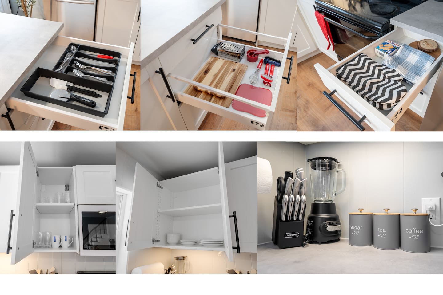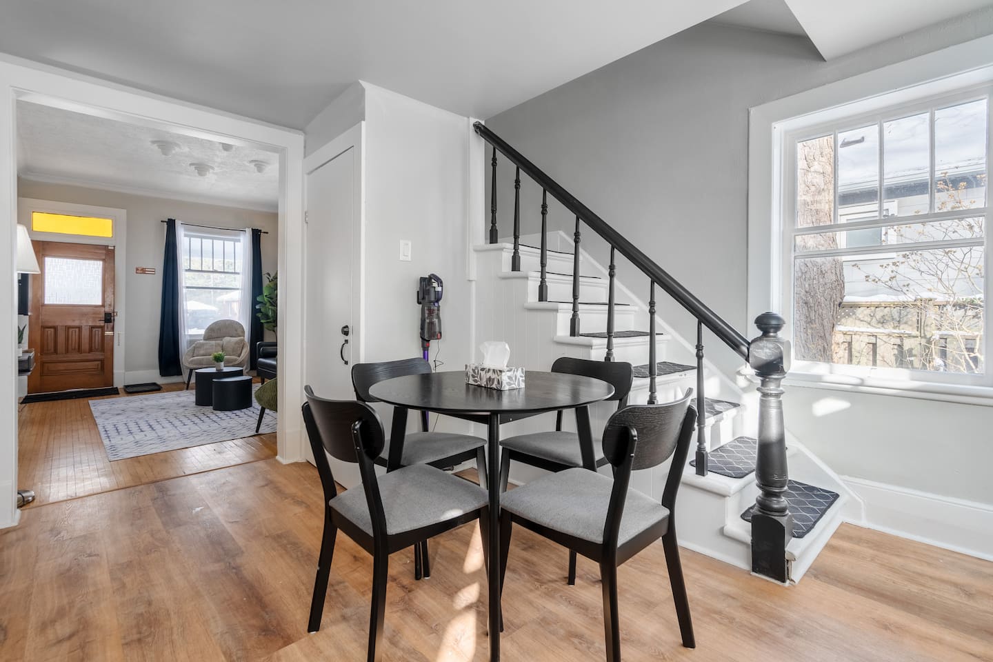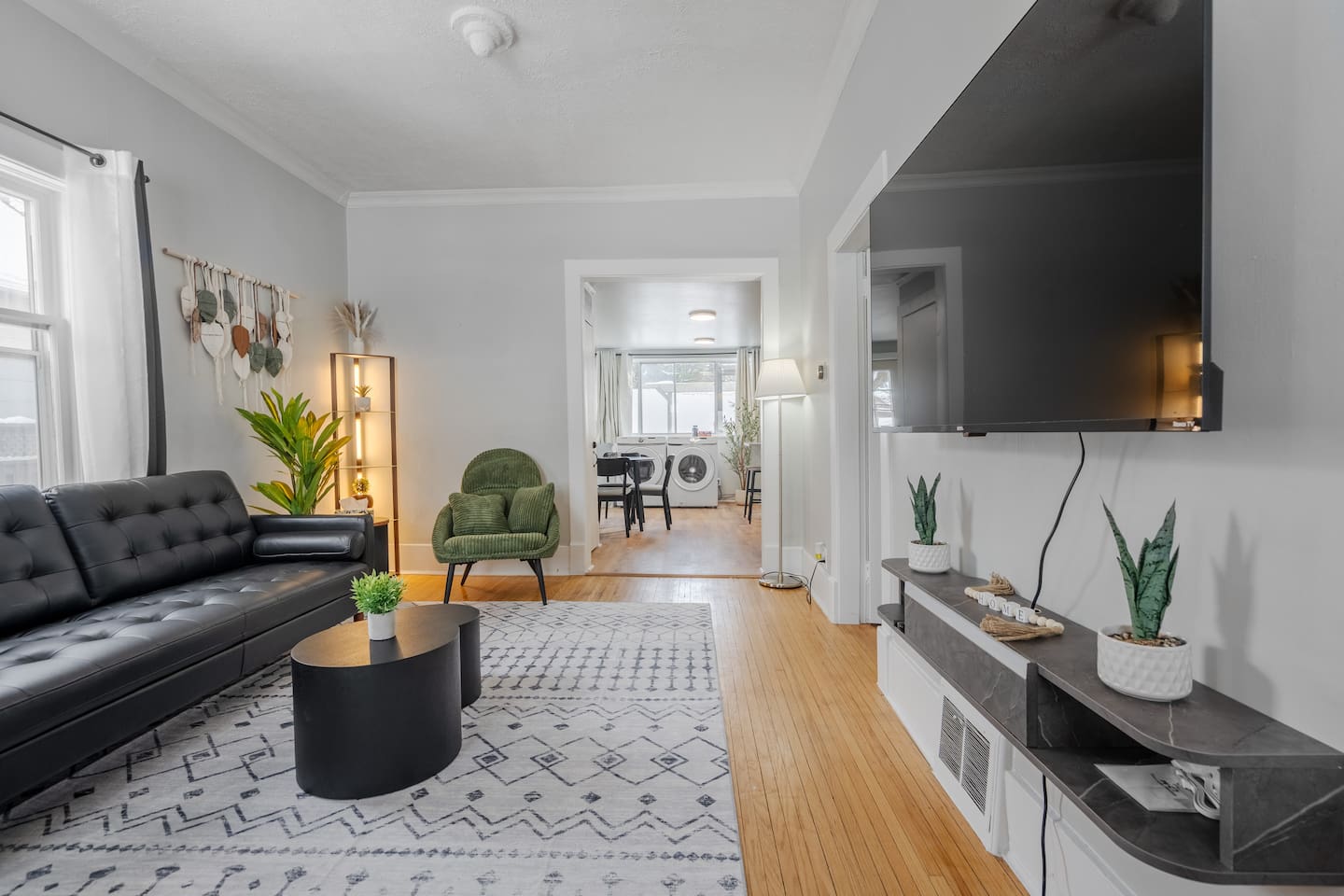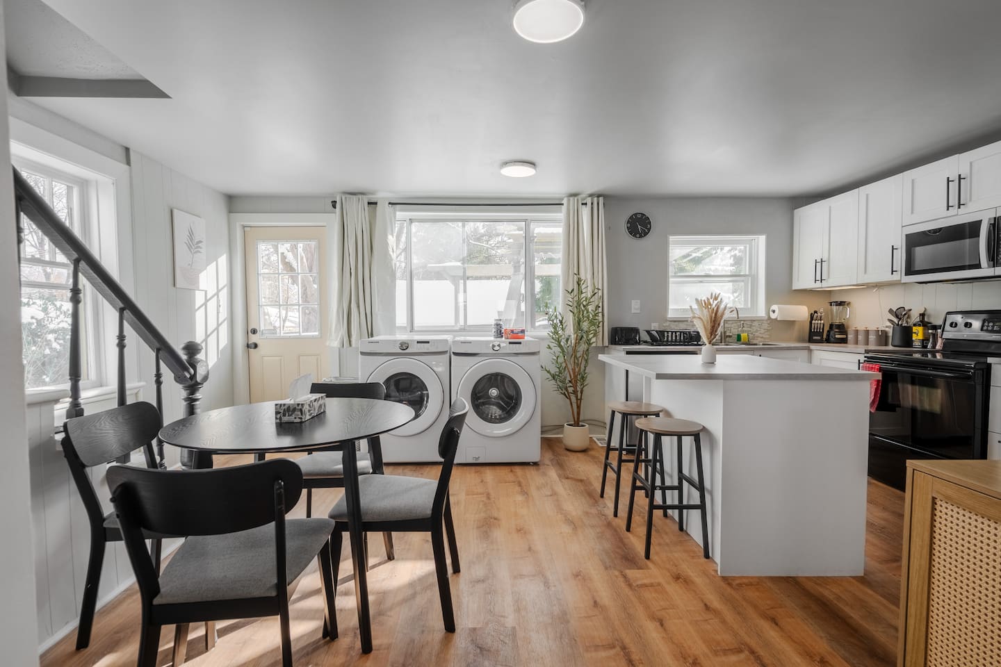 ★ Master Bedroom (second floor) ★ ✔ King-size bed with luxury mattress, plush pillows, fresh linens, and soft sheets ✔ Quiet workstation ✔ Bedside lamps for reading ★ Twin room (second floor) ★ ✔ 2 twin-size beds with premium comfort bedding ✔ Full closet space ✔ Bedside lamps for nighttime reading ★ Queen room (main floor) ★ ✔ Queen-size bed with luxury mattress, plush pillows, fresh linens, and soft sheets ✔ Full closet space ✔ Bedside lamps for nighttime reading ★ Lower Twin room 1 (basement) ★ ✔ Twin-size bed with premium comfort bedding ✔ Bedside lamps for nighttime reading ★ Lower Twin room 2 (basement) ★ ✔ Twin-size bed with premium comfort bedding ✔ Bedside lamps for nighttime reading ★ Living Room ★ ✔ 55” HD Smart TV with streaming apps ✔ Cozy seating area for relaxing ✔ High-speed Wi-Fi for work or play ★ Dining Area★ ✔ 4-Seater dining table for shared meals ★ Full Kitchen ★ A fully stocked kitchen perfect for long or short stays. Whether you're cooking a full meal or just enjoying your morning coffee, everything you need is here. ✔ Stove and Oven ✔ Full-size Refrigerator and Freezer ✔ Microwave ✔ Cookware (pots, pans, baking trays) ✔ All necessary cooking utensils ✔ Cutlery, dishes, and glassware ✔ Coffee station with coffee maker, mugs, and coffee essentials
