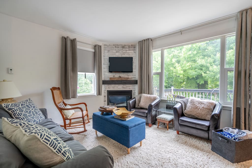 Property Highlights: 🏡 Main House Spacious 4-bedroom home with 3 full bathrooms, a fully equipped kitchen, and an open-concept living and dining area—perfect for gathering and relaxing. Master Bedroom (Main Floor): Queen bed | Ensuite washer & dryer Upstairs Bedrooms: Bedroom 1: Double bed Bedroom 2: Two twin beds Basement Suite: Double bed | Private kitchen | Washer & dryer Bathrooms: 3 full bathrooms—one conveniently located on each floor 🏠 Cabin Suite A comfortable, private space with its own full kitchen and bathroom. Bedroom 1: Double bed Bedroom 2: Double bed 🛖 Two Cozy Bunkies Each bunkie offers a private sleeping space with: Bedroom 1: Single bed Bedroom 2: Single bed This unique setup comfortably accommodates large families or groups, offering both shared gathering spaces and private areas for when you need a little quiet. 📍 Location: 🚗 Only a 5-minute drive to the Grand Bend Strip and Main Beach! 🏖️ Quick access to the beach, restaurants, shops, ice cream parlors, and the vibrant summer nightlife Please Note: The bunkies do not have their own washrooms. Guests staying in the bunkies will need to walk outside to access washrooms in either the main house or the cabin.