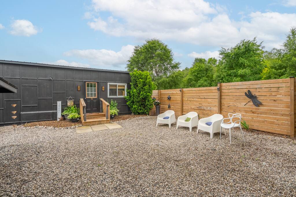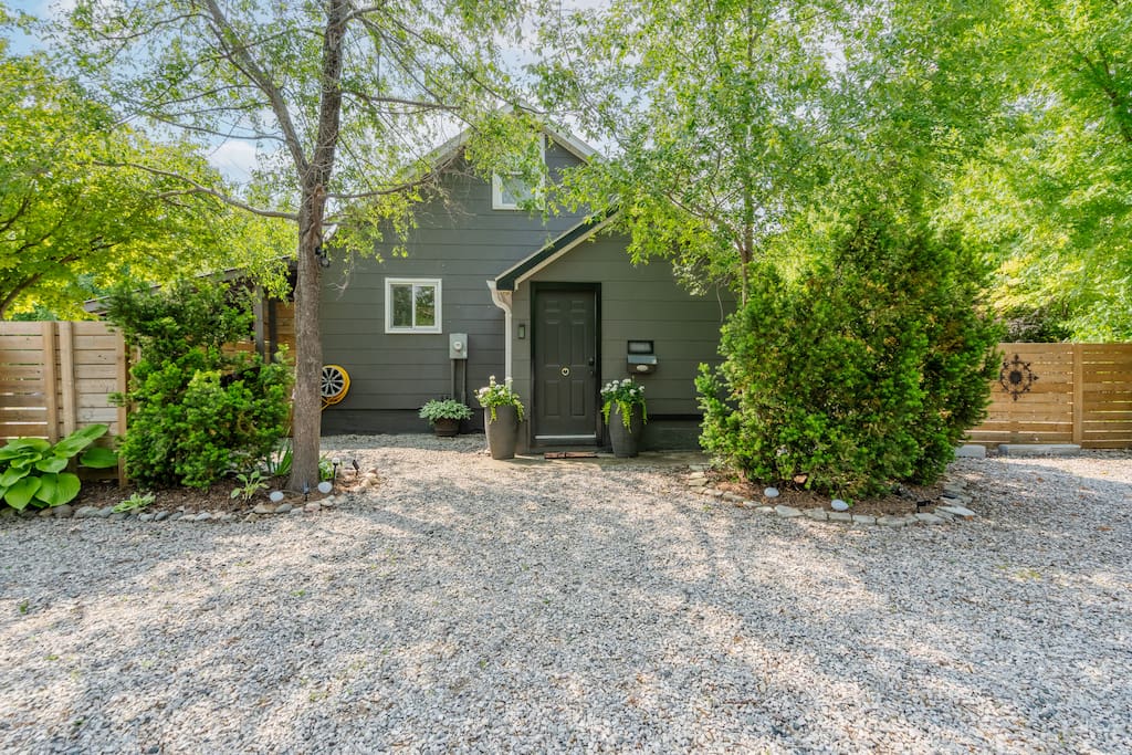 Guests will have full access to the main house, the cabin suite, and both bunkies. The driveway offers ample parking space for multiple vehicles.