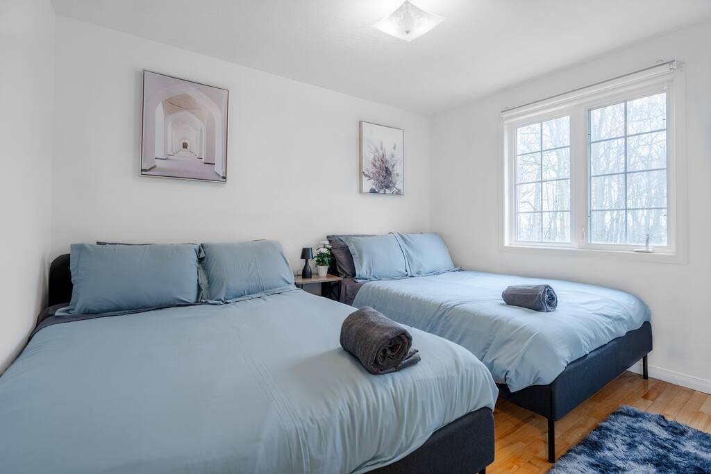 Spacious 4BR home with 5 beds, 2.5 baths, 2 living rooms, and 3 Smart TVs (including one in bedroom). Enjoy a full kitchen, laundry, and air hockey for fun nights in. Large backyard with a park behind it —perfect for relaxing, walking, or spending time with family and friends. Sleeps 10 comfortably. Private driveway for parking. Ideal for groups, families, or business travelers seeking comfort and convenience in an accessible location near all essentials. 8 mins away from Best Western Hotel/Hall