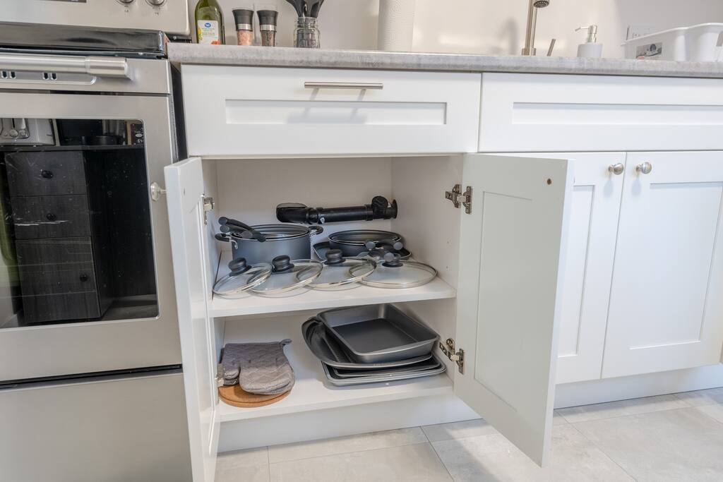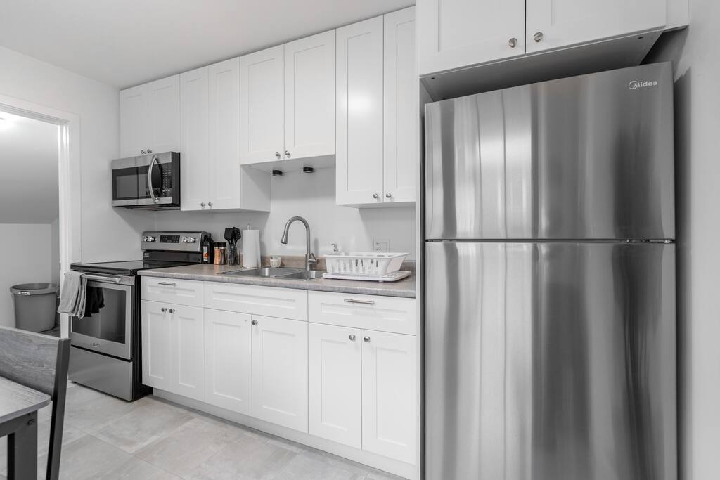 Fully equipped kitchen with modern appliances, perfect for home-cooked meals. Ideal for long stays, offering all the essentials for a comfortable and convenient experience. ✔ Stove Oven ✔ Refrigerator/Freezer ✔ Microwave ✔ Pots & Pans ✔ Coffee Maker + Coffee Essentials ✔ Sink - Hot & Cold Water ✔ Glasses ✔ Silverware ✔ Toaster ★ BATHROOM ★ Newly renovated bathroom, offering a serene space with modern fixtures and a refreshing shower. ✔ Shower ✔ Wash Basin ✔ Mirror ✔ Toilet ✔ Towels ✔ Essential Toiletries