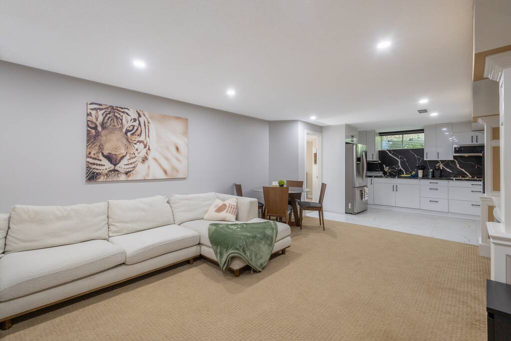 🏡 Property Highlights: Spacious 1-bedroom basement unit, with 1-bath home perfect for couples. Enjoy a full luxury kitchen, cozy living space, and 55” smart TV. The large backyard is perfect for getting some fresh air. Located in a quiet, convenient neighborhood close to all essentials—your ideal home base awaits!