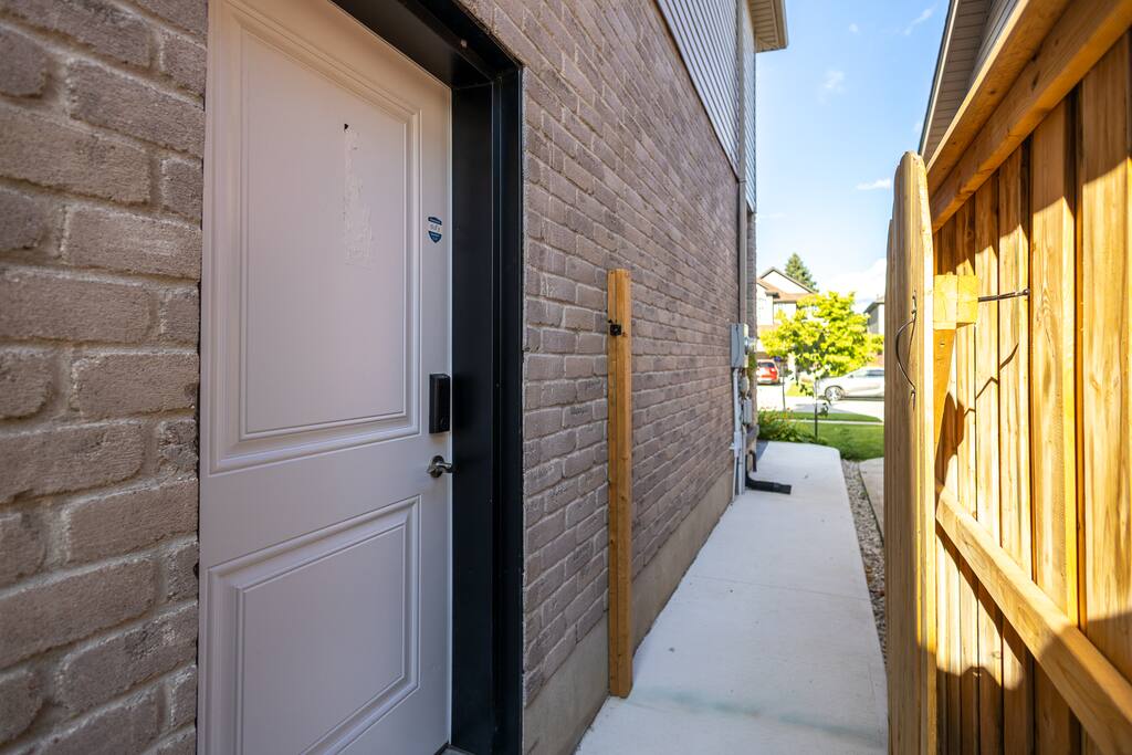 Modern 1-bedroom, 1-bathroom walkout unit featuring a luxury full sized kitchen with laundry, and outdoor patio for ultimate relaxation. The spacious living area features a 55-inch TV and separate entrance. The kitchen’s layout adds elegance, while the cozy bedroom promises restful nights. Stay connected with high-speed Wi-Fi. Perfect for a single occupant or couple looking for comfort and privacy