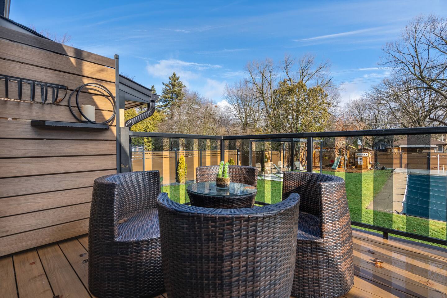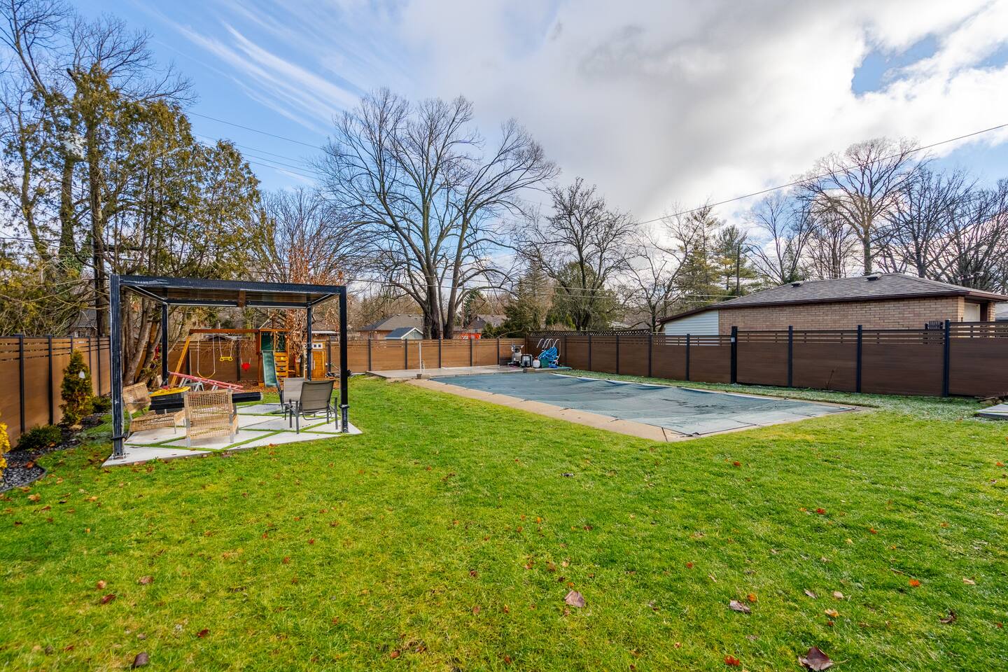 Welcome to your modern luxury paradise! ◦4BR bungalow ◦Full kitchen & Laundry ◦Spiral stairs ◦Spacious backyard, pool, patio, playground ◦Free parking ◦Baby crib ◦3 TVs ◦Piano ◦Treadmill ◦A tenant resides in an entirely separate basement with a private entrance Nearby Locations: 📍 4 mins->Civic Garden Complex 5 mins-> DT🌆 Greenway Park (Dog park) 6 mins-> - Harris, Ivey & Thames Park 7 mins-> - Budweiser Garden - Canada Life Place - Springbank🍾 8 mins->Thames Valley Golf Course⛳️