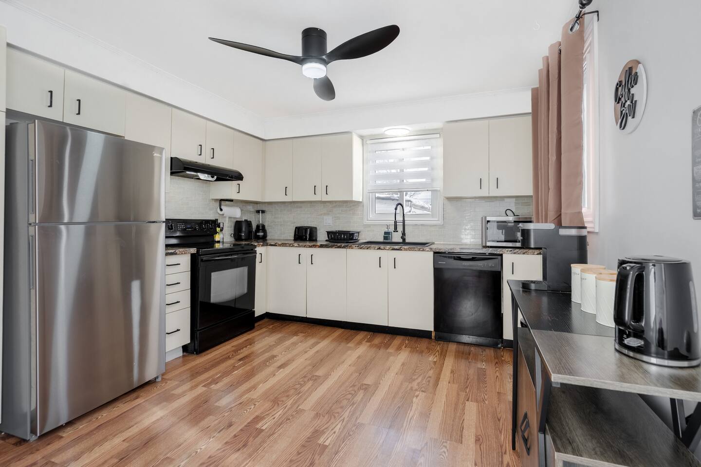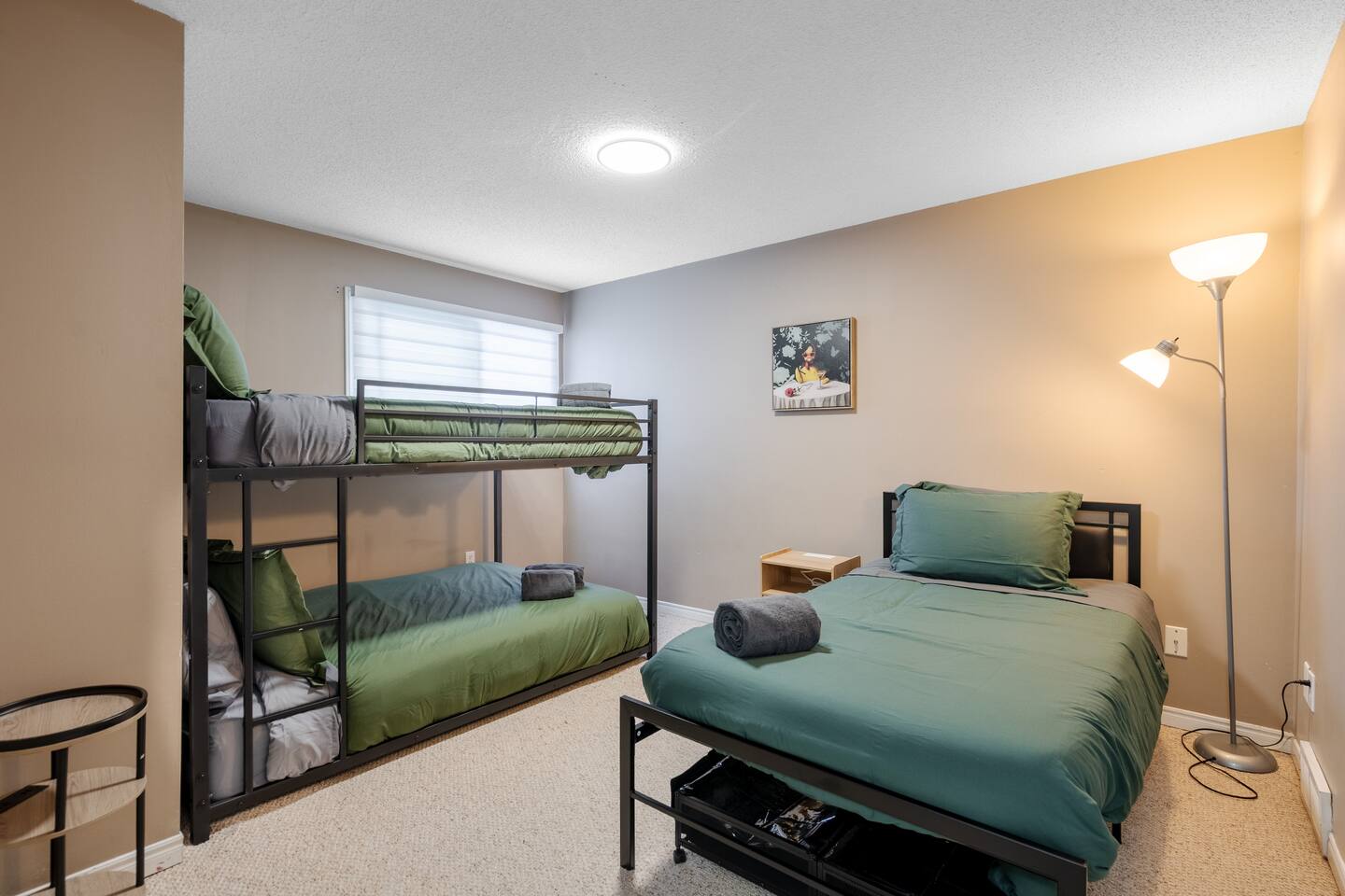 ★Master BEDROOM ★ ✔ King-size bed with Luxury Mattress Pillows, Linens, and Sheets ✔ Reading Station With Large Mirror ✔ Reading Lamps ✔ Full Closet ★The Queen’s Retreat ★ ✔ Queen-size bed with Luxury Mattress Pillows, Linens, and Sheets ✔ Full Closet ✔ Reading Lamps ★The Bunk Haven ★ ✔ Double Over Double Bunk Beds With an Additional Twin Bed, Linens, and Sheets ✔ Full Closet ✔ Reading Lamps ★ Games Room ★ ✔ Retro Street Fighter Arcade Game ✔ 4 Velvet Bar Stools For Late Night Hang-outs ✔ 43" HD Smart TV ★ LIVING ROOM ★ ✔ 65” HD Smart TV with Sound Bar ✔ 6 Seater dining space ✔ High-Speed Internet ★ FULL KITCHEN ★ Fully equipped kitchen with modern appliances, perfect for home-cooked meals. Ideal for long stays, offering all the essentials for a comfortable and convenient experience. ✔ Stove Oven ✔ Refrigerator/Freezer ✔ Microwave ✔ Pots & Pans ✔ Cutlery ✔ All needed Cooking Utensils ✔ Coffee Station + Coffee Essentials